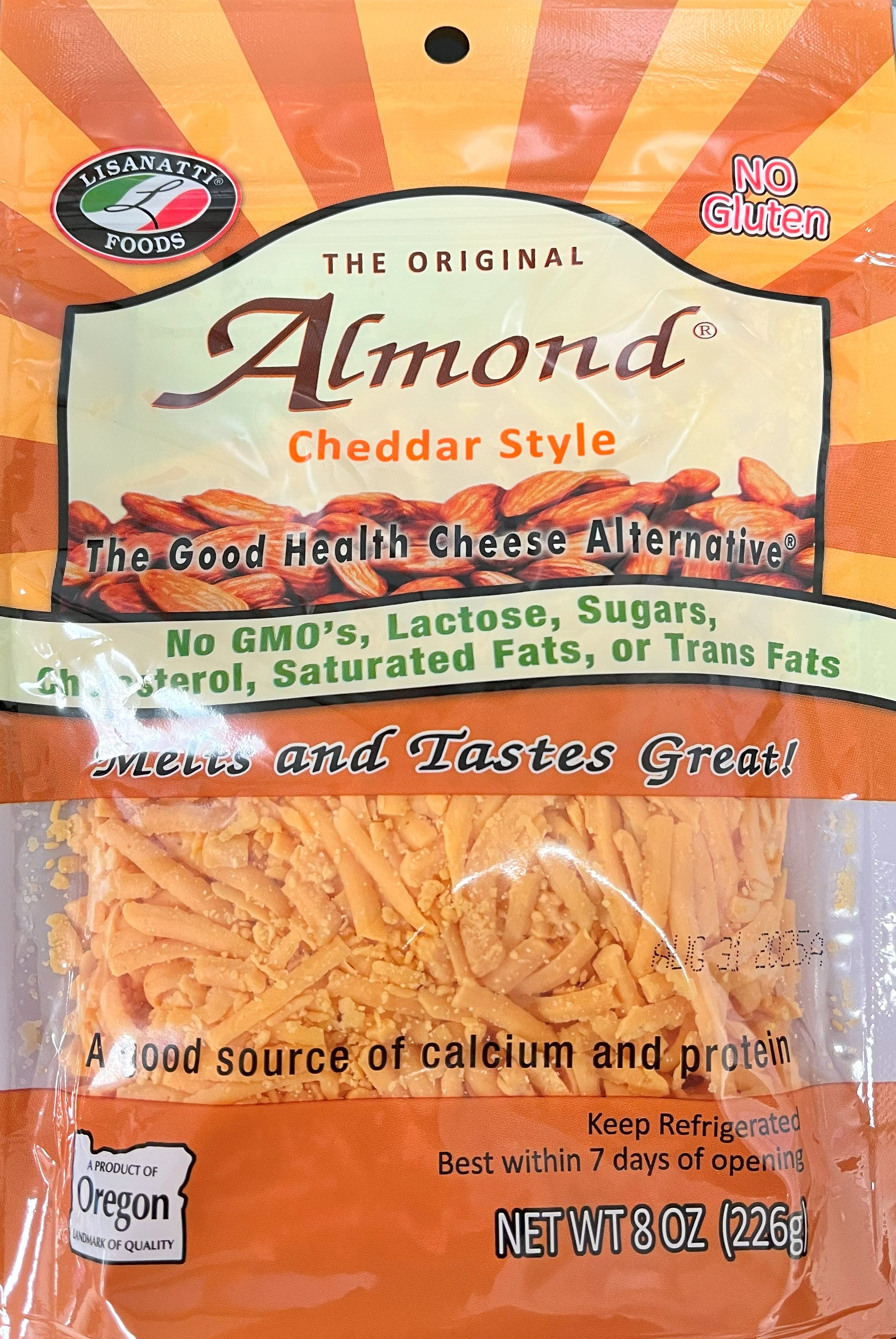 INGREDIENTS: Almond Base (Filtered Water, Crushed Organic Almonds), Casein (Milk Protein), NON-GMO Expeller-pressed Canola Oil, Food Starch Modified (NON-GMO Potato), Natural Flavors, NON-GMO Vegetable Glycerin. Contains less than 2% of the following: Olive Oil, Sodium Phosphate, Sea Salt, Citric Acid, Psyllium Husk (A Natural Fiber), Calcium Phosphate, Organic Annatto.